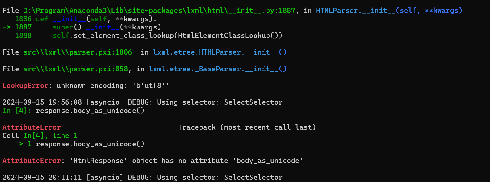 确保你的 Scrapy、lxml 和 Parsel 库都是最新版本。有时库的版本不兼容会导致问题。